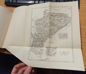 Blue cloth boards lightly bumped. Tightly bound. A little age toning. A few light spots of foxing mostly confined to the first and last few leaves. Otherwise very crisp, clean and bright, free from inscription. Folding map has a few very light spots of foxing, otherwise excellent.
