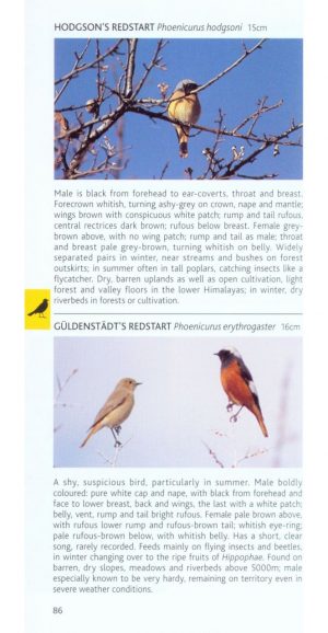 The Himalayas, the world’s highest mountain range, are a birdwatcher’s paradise. Many of its species are high altitude specialists, including Tibetan and Himalayan Snowcocks, Snow Partridge, Ibisbill, Tibetan Sandgrouse, Hume’s Groundpecker, Tibetan Snowfinch and Great Rosefinch. The area comprises a mosaic of different habitats which host a huge range of avian species, with families such as raptors, gamebirds, flycatchers and warblers particularly well represented. 252 of the Himalayas’ most interesting and spectacular birds are featured in this concise and easy-to-use guide, and each species is illustrated with a colour photograph which is accompanied by text giving key information on identification, habitat and distribution.