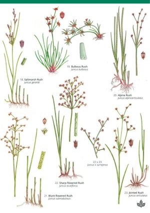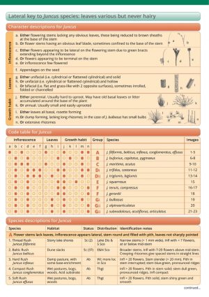 The Rushes Identification Chart covers 32 species of rushes and wood-rushes. Clear colour illustrations include many magnified views of key diagnostic features, such as flower heads, stem pith and seed shape. Lateral key to Juncus and Luzula are included.