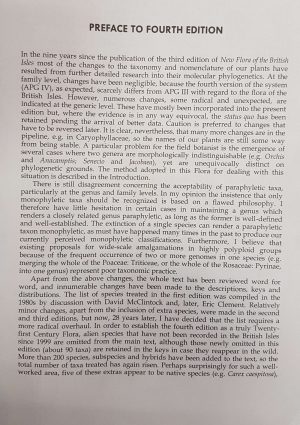 In the nine years since the appearance of the Third Edition, many new data and ideas relating to our wild flora have become available. More than 200 species and hybrids have been added to the text of this fourth edition and, in order to establish it as a truly twenty-first century Flora, alien species that have not been recorded in the British Isles since 1999 (about 90 taxa) are omitted from the main text.