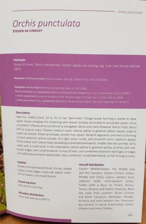 Many natural history books on Crimea have been published, most of them in Russian. However, Orchids of the Crimea is the first book to be entirely devoted to the orchids of the Crimean Peninsula. It covers all known 45 orchid species and 5 infraspecific taxa that occur there. The distribution for each taxon is shown on 5-km grid maps. The treatment of each species, subspecies, and variety includes a morphological description and information about its type and nomenclature, as well as information about its habitat, flowering time, geographical and altitudinal distribution in the Crimea and elsewhere, and pollinators. Where necessary, other important aspects, e.g. occurrence of hybrids and current threats, are given as well. All orchid taxa are illustrated with numerous colour photos. Photos of a few natural orchid hybrids, occurring in the Crimea, are also provided. The book also includes a general section, which describes the main aspects of the Crimean geography, history, vegetation and flora, as well as the conservation and botanical exploration of the Crimean orchids.