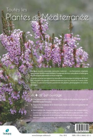 In all, it provides a comprehensive if not almost exhaustive presentation of the plants found in the Mediterranean region of continental France (1900 taxa), a rich and remarkably enhanced iconography, and practical information for species identification. All plant and nature lovers, beginner or expert alike, will appreciate this book, which will help them discover and identify the plants of the Midi.