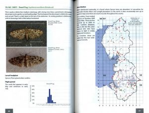 Covering the 43 resident species that occur in North-west England (out of 49 in the UK), this 120-page book summarises the key features to look out for on this difficult but fascinating group of Geometrid moths. The information on finding pugs make this a useful introduction to moth recorders outside of this area as well. Each species account gives a short morphological description, mentions what is known about larval food plants, and describes distribution and flight period. For each species photos of the adult moth and, where available, the larva, a colour distribution map, and a chart showing the flight period are included.