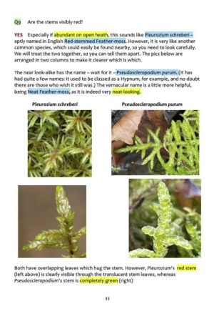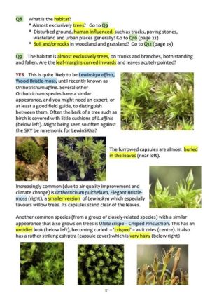 Recognising that keys can be a little daunting for the beginner, Faith has utilised a more friendly flowchart format, leading the reader through easy steps from ‘What is a moss?’ to simplified identification of 24 of the most commonly recorded mosses in the British Isles.