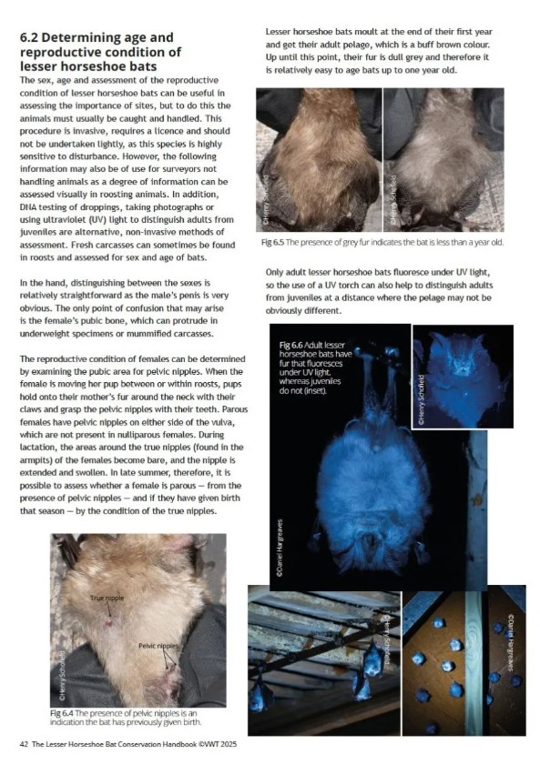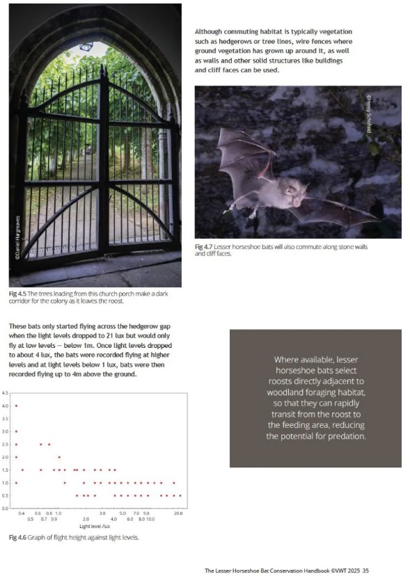 While this handbook focuses on the lesser horseshoe bat, it also contains information on managing roosts for greater horseshoe bats. The two species have very similar roosting requirements, and if practitioners are seeking to enhance roosts for greater horseshoe bats, there is much that is interchangeable. Throughout this new handbook, guidance is provided on the modifications for lesser horseshoe bats that can be used in greater horseshoe bat roosts and on where adjustments for the larger species are necessary.