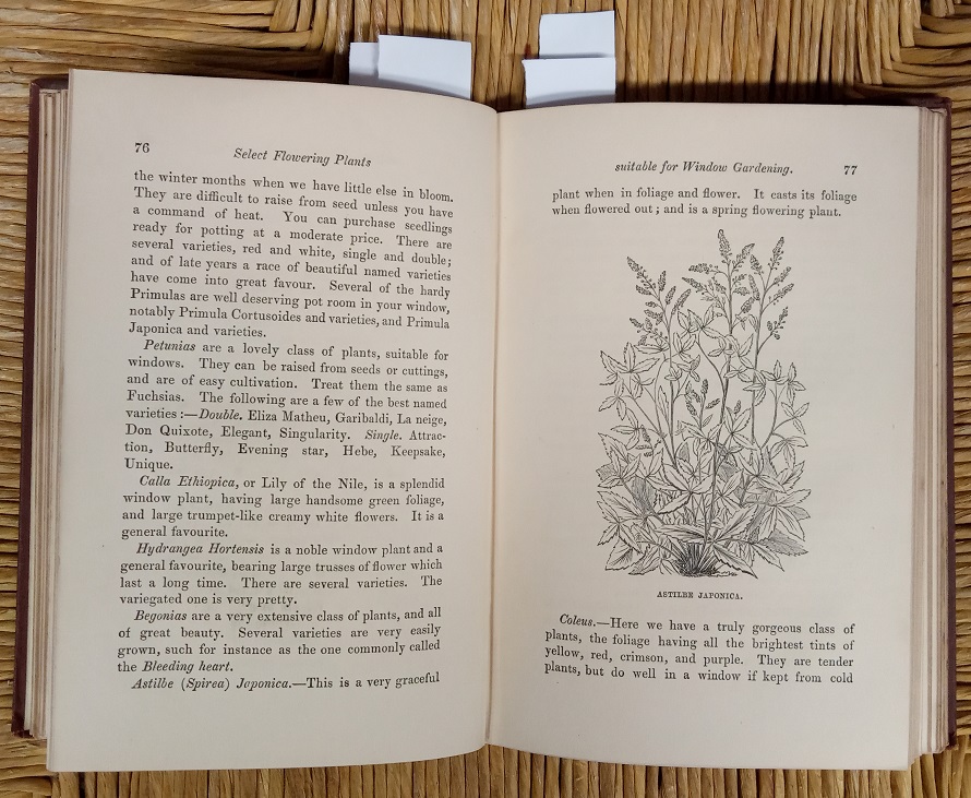 Pictorial burgundy cloth (illustrated in colour), 12mo (5 x 7 inches) sized, with gilt titles and cover decoration details and black decoration to spine, AEG (all edges gilt); light wear to extremities, more so to top and bottom of spine; front hinge weakening. Internally bright and crisp, though one leaf has a neat corner crease; almost no age toning or foxing; numerous annotations inside, mostly in pencil, mostly pp.178 to end. Illustrated with coloured plates and wood engravings: the plates have some light damp staining in the border, not affecting the image in either case. iv + 204pp. + 16pp advs. Overall Very Good. Photos available on request. An attractive copy of this scarce work.