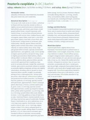 This guide focuses on the identification of Surinamese trees, based on field, vegetative, floristic and wood characteristics. It includes botanical descriptions, wood descriptions, illustrations and photos of 100 Surinamese commercial timber tree species, potential timber tree species and tree species protected by Surinamese forest law. It is the first book for Suriname with more than 400 photos to illustrate characters of tree species for easy identification in the field. The guide is intended for anyone interested in learning and identifying Surinamese timber trees.