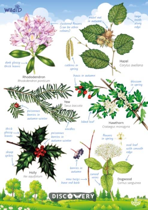 From Honeysuckle to Horse Chestnut, discover 30 trees, shrubs and bushes that grow in gardens, hedges and woodland. Learn to tell a Sycamore from a Maple!