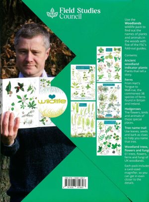 The Woodlands wildlife pack is a presentation pack featuring 5 different fold-out guides. Find out the names of plants and animals among trees, woods and forests. The pack also includes a card-sized magnifier to help you get in ever closer to the details.